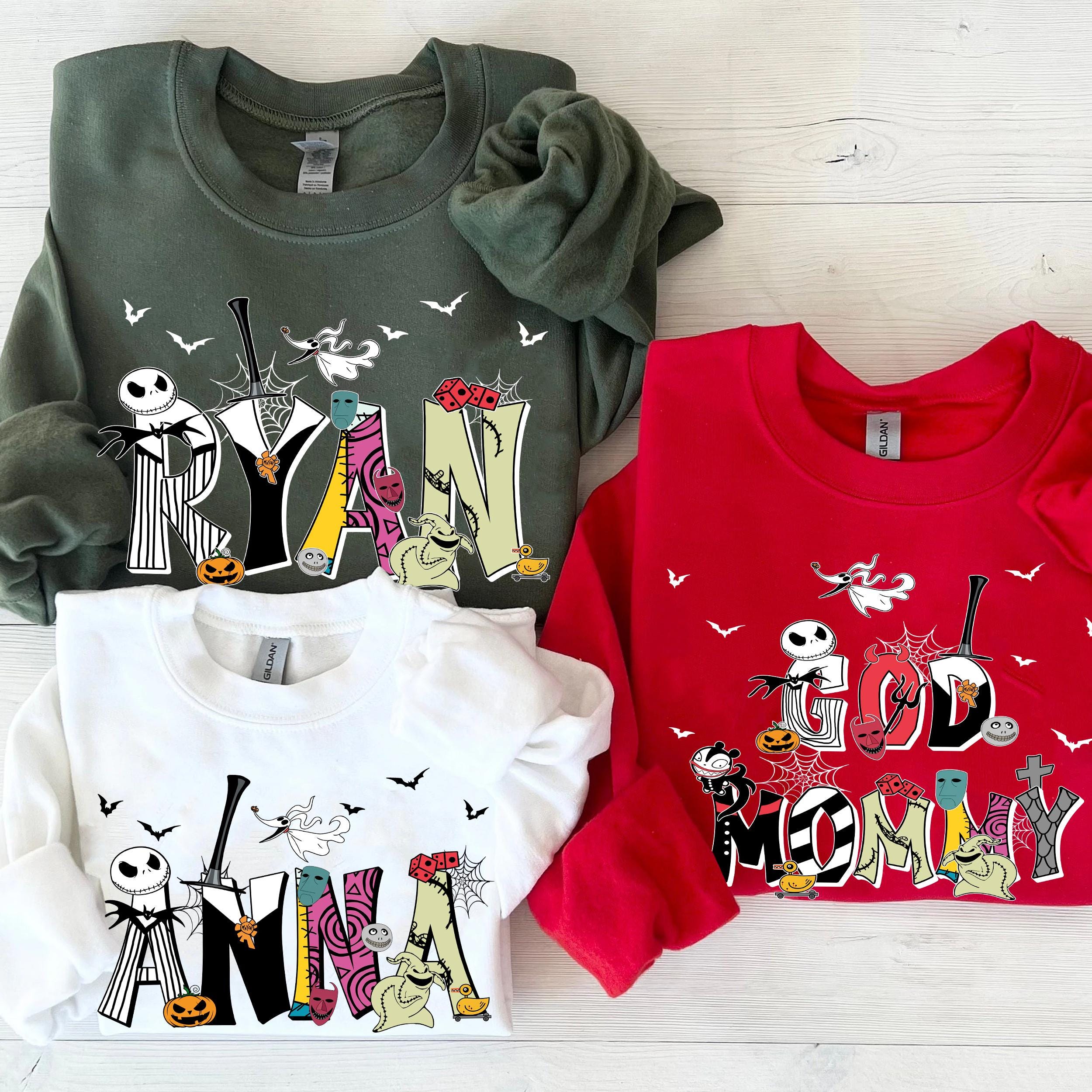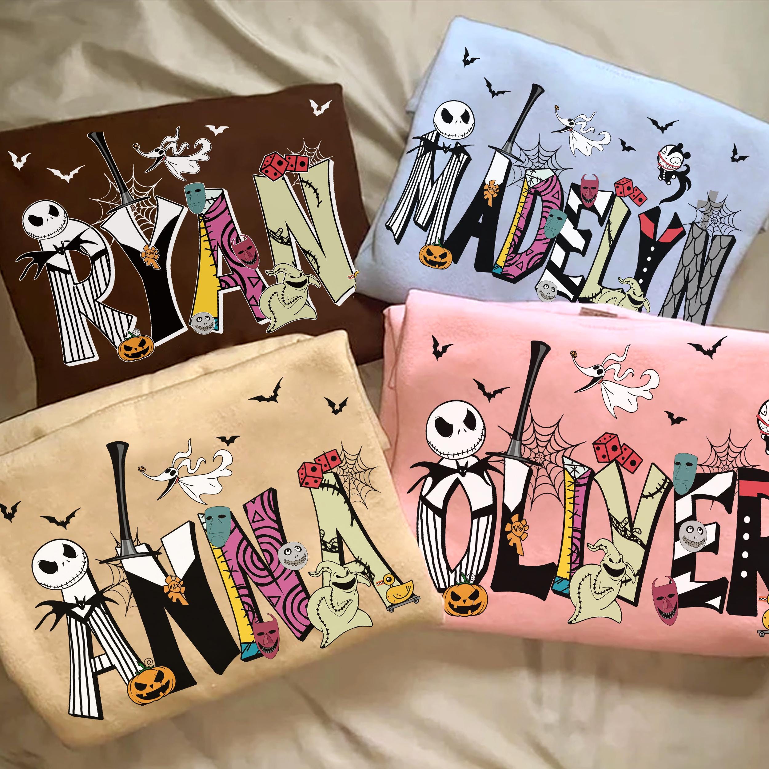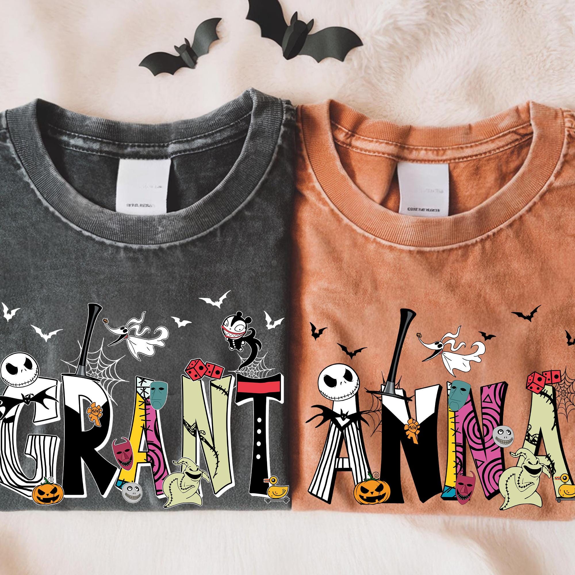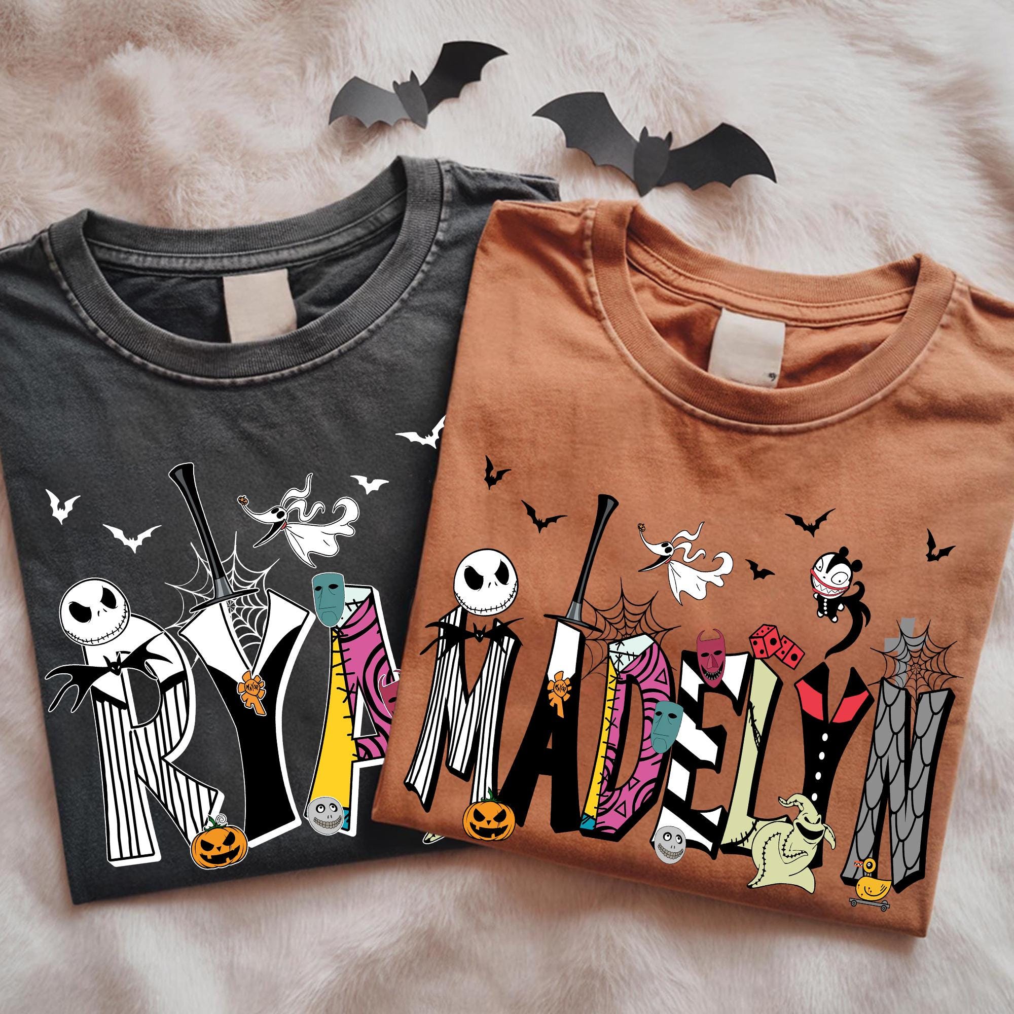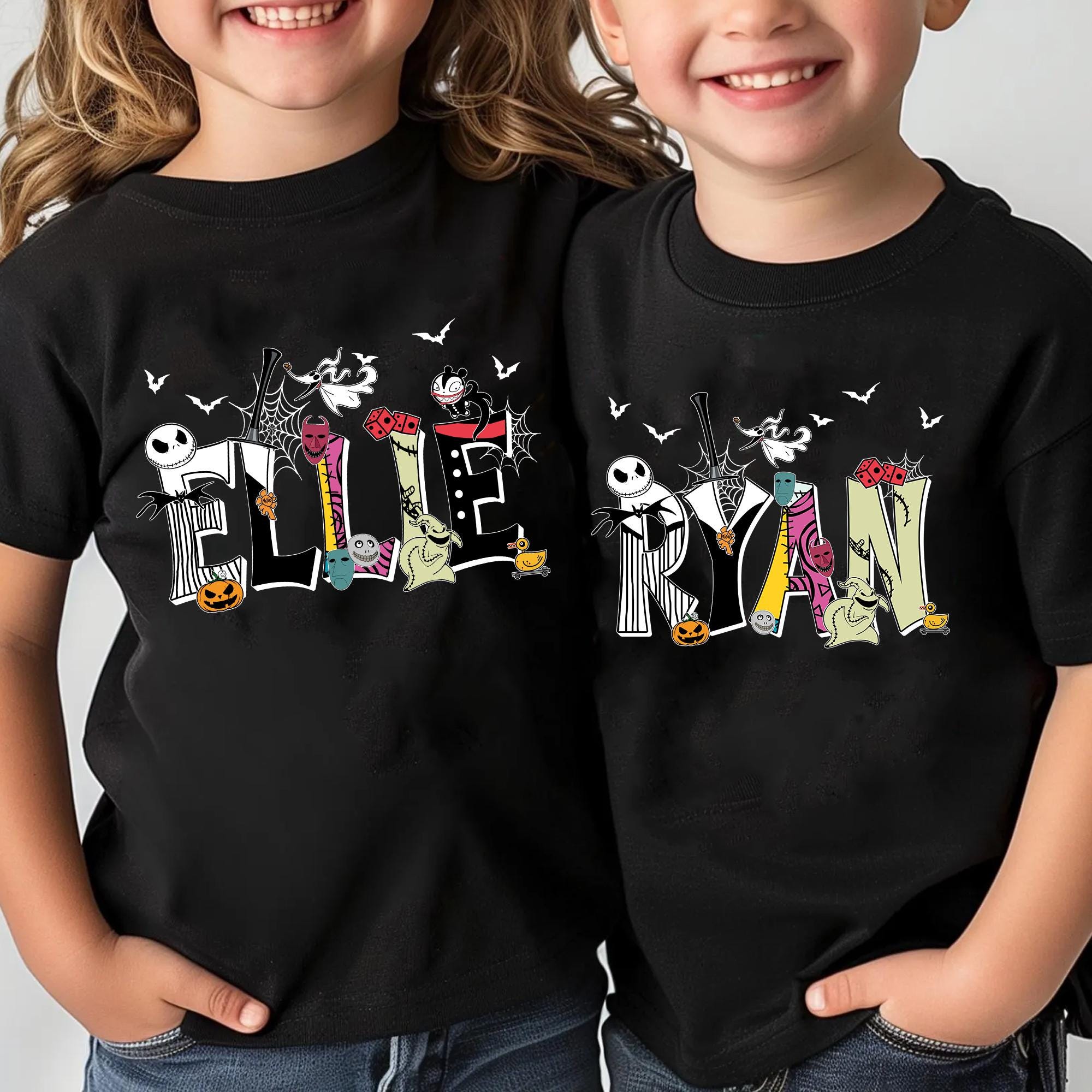Custom Name Nightmare Before Christmas Kid Shirt, Personalized Disney Halloween Tee For Kids, Jack Skellington Sally Mayor Oogie Boogie Bash