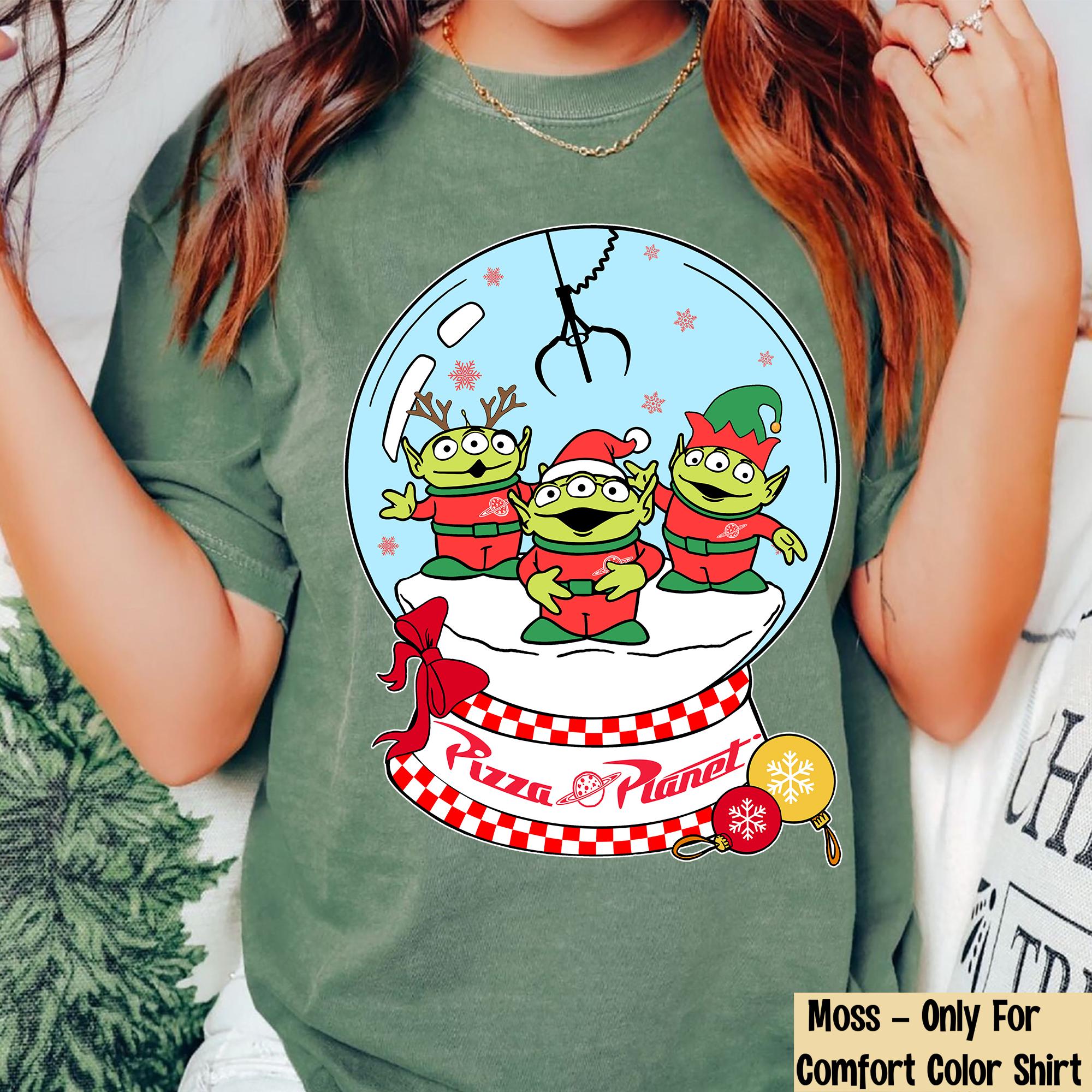 Vintage Santa Alien Pizza Planet Snowglobe Comfort Color Shirt, Toy Story Christmas T-shirt, Disney Christmas Holiday Trip, X-mas Party Gift