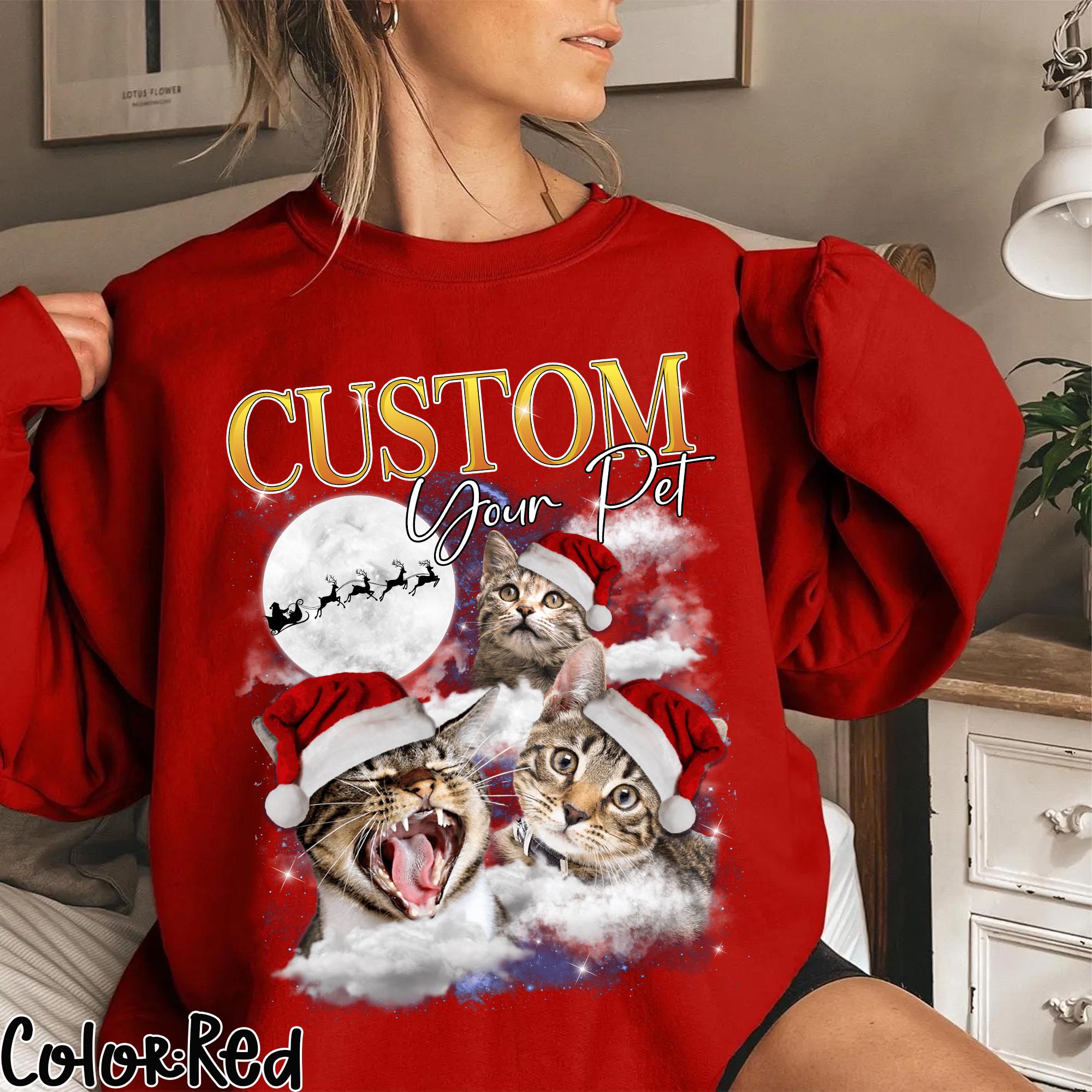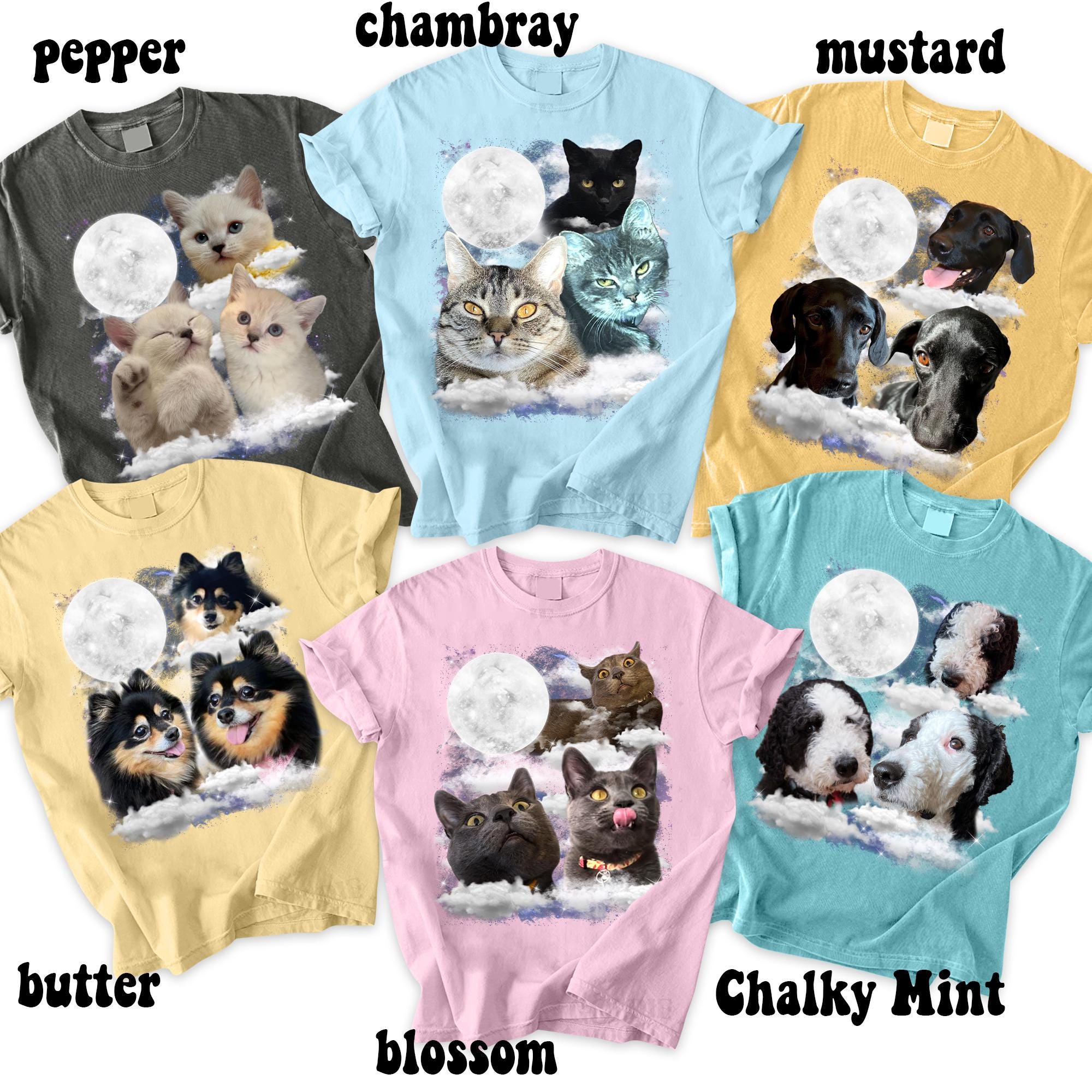 Custom Photo Cats With Moon Comfort Colors Shirt, Personalized Space Pet Portrait T-shirt, Funny Pet Owner Birthday Gift, Cat Lover Tee