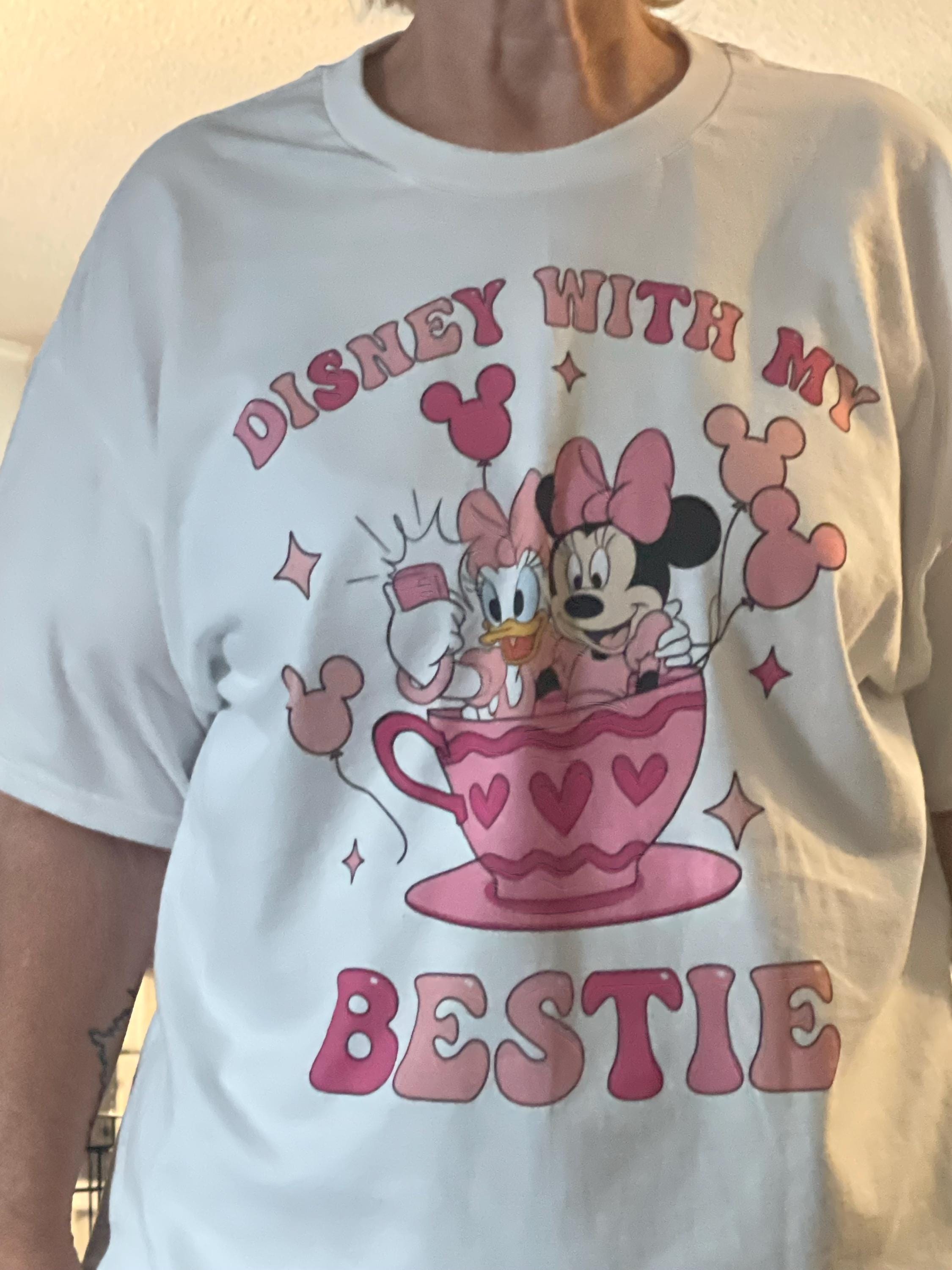 Minnie Daisy Balloon Tea Cup Disney With My Bestie Comfort Colors Shirt, Retro Disney Girl Tee, Disneyland Best Friends Trip, Bff Matching