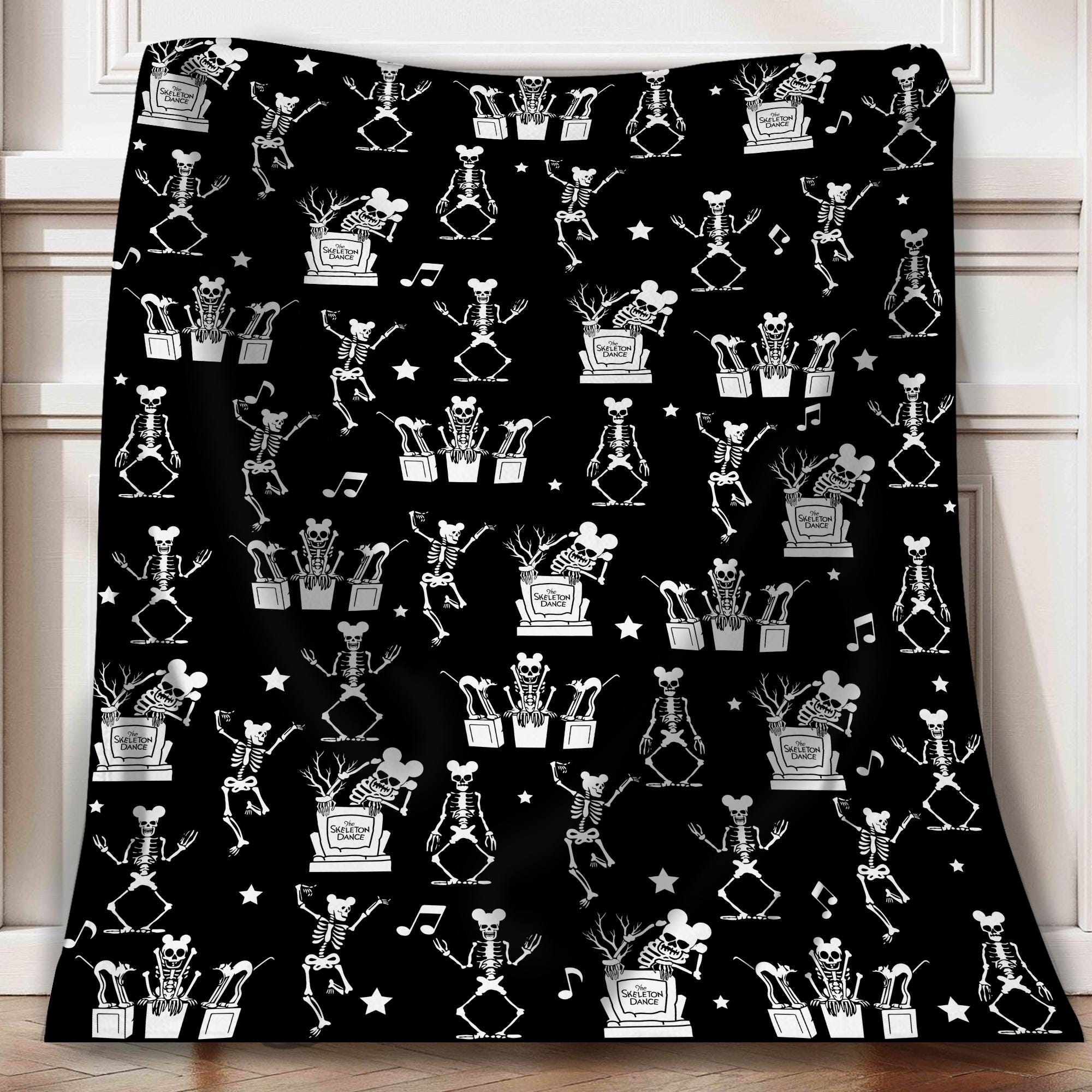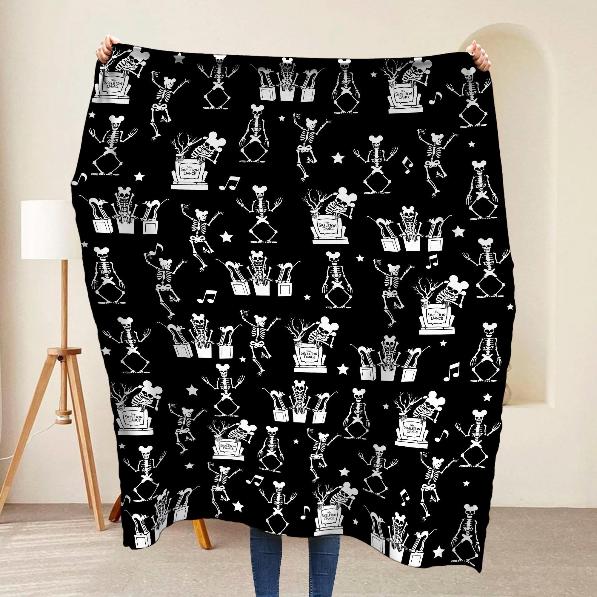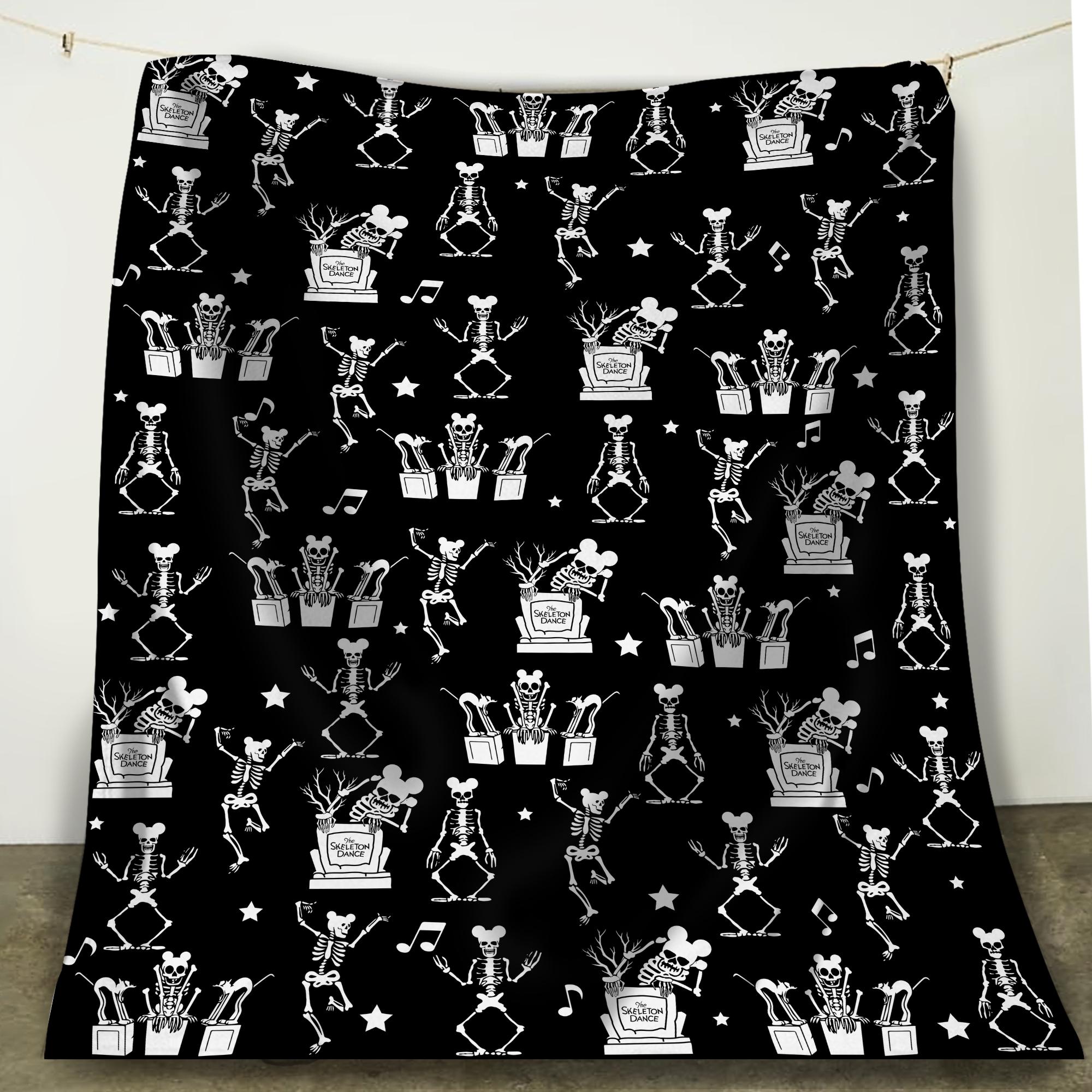 Vintage Skeleton Dance Rest In Pieces Blanket, Disney A Silly Symphony Fleece Blanket, Disney Halloween Bedding, Disney Cartoons Home Decor