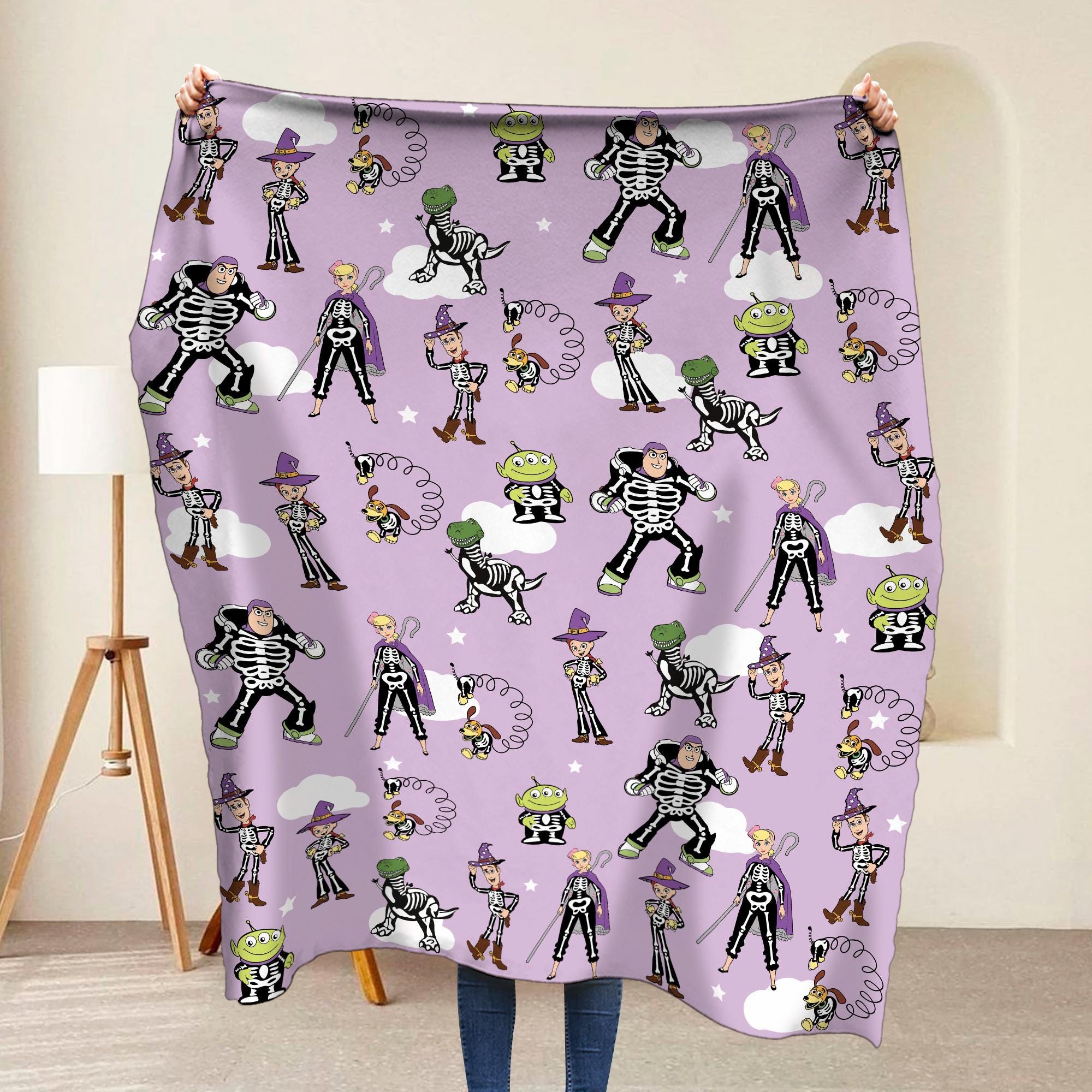 Funny Toy Story Skeleton Costume Halloween Blanket, You've Got A Friend In Me Fleece Blanket, Disney Halloween Bedding, Spooky Season Gift