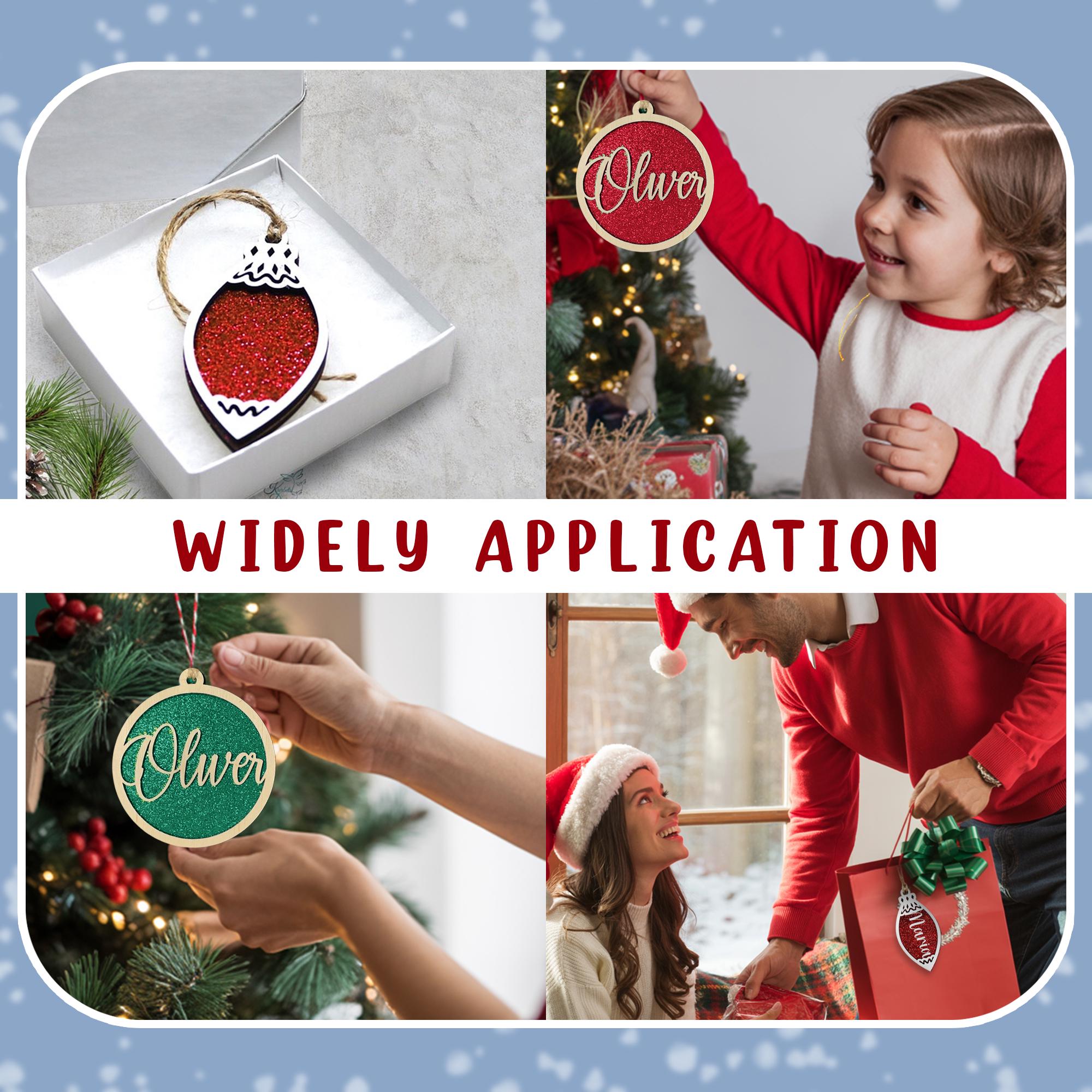 Personalized wooden ornament made from 2 sturdy layers — UV-printed top + sparkling glitter base 🎄 Perfect for Christmas tree decor, gifts, or keepsakes 🎁 Durable, lightweight, and made with love 💖